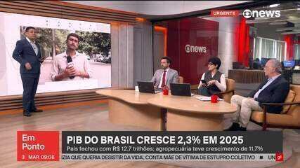 Foi o melhor desempenho entre os setores da economia: no mesmo período, a indústria avançou 1,4% e os serviços, 1,8%. Segundo Rebeca Palis, coordenadora de Contas Nacionais do IBGE, o agro, as indústrias extrativas, informação e comunicação e outras atividades de serviços contribuíram com 72% do PIB no ano passado. “Se olharmos só a agropecuária, ela responde por 33% de todo o crescimento da economia do ano passado. Foi a que contribuiu mais para o crescimento do PIB olhando as atividades”, diz Pallis. Desempenho da agropecuária e do Produto Interno Bruto (PIB). — Foto: Reprodução O forte crescimento do agro foi puxado por uma combinação de colheitas recordes, especialmente de soja e milho, além de um bom desempenho da pecuária, que também bateu marcas históricas. Apesar de ter tido o maior crescimento na comparação com outros setores, a agropecuária tem um peso de 7,1% no PIB, bem menor que os serviços (69,5%) e a indústria (23,4%). Isso acontece porque o PIB do IBGE calcula somente as atividades primárias do agro, como os plantios e as criações de animais. Mas, quando se coloca nessa conta, os serviços, os comércios e as indústrias do setor, esse peso sobe para 23%, segundo dados da Confederação da Agricultura e Pecuária (CNA). PIB cresce, mas brasileiro ainda aperta o cinto O que favoreceu a agropecuária O forte crescimento do agro em 2025 representou uma recuperação em relação a 2024, quando o PIB do setor recuou após secas extremas e enchentes terem derrubado diversas produções agrícolas, como as de soja, milho, cana-de-açúcar e laranja. “A gente sabe que a agropecuária é uma atividade muito vulnerável à questão climática. Mas, em 2025, não tivemos nenhum problema climático relevante a ponto de gerar uma quebra de safra”, diz Juliana Trece, coordenadora do Núcleo de Contas Nacionais do FGV Ibre. “Também tivemos custos de produção menores e ganhos de produtividade”, acrescenta. No ano, a colheita de milho cresceu 23,6%, enquanto a de soja teve alta de 14,6%, segundo o IBGE. Com a maior produção dos grãos, a exportação do setor também cresceu. A soja, por exemplo, bateu recorde com o embarque de 108,2 milhões de toneladas, um aumento de 9,5% na comparação com o ano anterior. A pecuária brasileira também conseguiu superar os seus próprios recordes em um ano marcado pelo tarifaço dos Estados Unidos, segundo maior comprador de carne bovina do Brasil. As exportações bateram recorde puxadas pela demanda chinesa. No ano, foram vendidas 3,50 milhões de toneladas, alta de 20,9% em relação a 2024. Além disso, o abate de gado chegou a 42,3 milhões de cabeças, outra marca histórica do setor. Como fica em 2026 Após um ano de recordes, a expectativa do Ibre é de que o setor desacelere em relação a 2025. “O Ibre está projetando uma leve queda de 0,2%, o que é considerado um cenário de estabilidade. Diferente de 2025, a agropecuária não deve ser o motor que impulsionará o PIB este ano”, diz Trece. A pecuária, por exemplo, está entrando em um momento de redução do número de abates. A tendência é de que, neste ano, os produtores retenham mais fêmeas nas fazendas para produzir bezerros em vez de direcioná-las para a produção de carne. É um movimento diferente do que aconteceu em 2025, quando um volume recorde de fêmeas foi enviado para o abate. As colheitas de grãos também devem desacelerar em relação ao ano passado, diz Trece. “A produção de soja, que cresceu 14,6% em 2025, deve crescer apenas 3,9% em 2026. Já o milho tem uma previsão de queda de 5,6% na produção para este ano”, afirma. Roque, da Hedgepoint, discorda. Para ele, em 2026, o agro aumentará ainda mais a sua participação no PIB brasileiro. Isso porque a estimativa é que as exportações de soja e milho continuem crescendo em 2026, gerando mais espaço no mercado internacional e batendo novos recordes. Na produção, a Hedgepoint prevê novo recorde para a soja, com safra estimada em 179,5 milhões de toneladas no Brasil. O volume da safra anterior foi de 172 milhões de toneladas. Já no caso do milho, a maior oferta vem também de estoques iniciais maiores. PIB do Brasil cresce 2,3% em 2025, diz IBGE