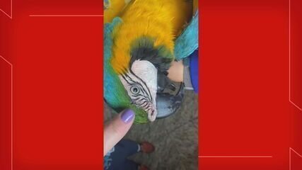 Um vídeo mostra a arara momentos após o resgate. Ela não conseguia se mexer, e apenas piscava os olhos (veja vídeo acima).