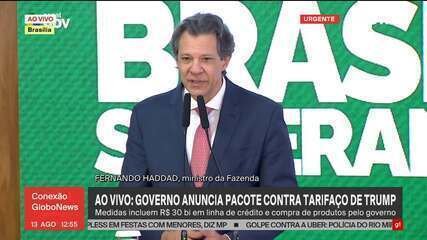 O ministro da Fazenda deu a declaração durante anúncio do governo de medidas de resposta ao tarifaço de Donald Trump. “O Brasil é um país que tá sendo sancionado por ser mais democrático do que o seu agressor. É uma situação inédita e muito incomum no mundo um país que não persegue adversários, imprensa, escritórios de advocacia, universidades, imigrantes legais ou ilegais, e está sujeito a uma retaliação injustificável do ponto de vista político e econômico”, disse. Pacote de resposta Haddad observa Lula falando durante evento que anunciou plano de socorro a empresas afetadas pelo tarifaço de Trump — Foto: Adriano Machado/Reuters O governo apresentou a primeira parte do pacote de medidas para socorrer empresas afetadas pela cobrança de uma sobretaxa de 50% para entrada de produtos brasileiros nos Estados Unidos. A principal medida anunciada foi a criação de uma linha de crédito de R$ 30 bilhões para auxiliar empresas impactadas pelo tarifaço imposto pelo presidente dos EUA, Donald Trump. Entre as medidas, o governo está prorrogando, por um ano, o crédito tributário para empresas que importam para produzir. O chamado “drawback” é uma das ferramentas para a redução de custos em operações de comércio exterior. O mecanismo foi criado para incentivar as exportações, permitindo a suspensão ou isenção de tributos na importação de insumos utilizados na fabricação de produtos que serão exportados. Também em resposta ao tarifaço, Alckmin afirmou que as compras governamentais, de municípios, estados e da União, devem priorizar produtos fabricados por empresas afetadas pelo tarifaço de Trump.