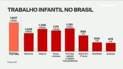 Segundo o Painel de Informações e Estatísticas da Inspeção do Trabalho no Brasil (Radar SIT), do MTE, apenas 2.745 crianças e adolescentes foram afastados dessa condição em ações da auditoria fiscal ao longo de 2024. Isso corresponde a 0,2% do número estimado pelo IBGE. No mesmo ano, apenas o Disque 100 recebeu cerca de 4,2 mil denúncias envolvendo trabalho infantil, segundo o Painel de Dados do Ministério dos Direitos Humanos e da Cidadania (MDHC). Em 2025, esse número foi ainda maior, com o registro de mais de 5,1 mil denúncias, alta de 19,4%. Denúncias de trabalho infantil no Disque 100 — Foto: Arte g1/ Kayan Albertin Dados do Ministério Público do Trabalho (MPT) também indicam alta nos indicadores em 2025. O número de denúncias chegou a 7,9 mil, frente a 5,8 mil em 2024, um aumento de 36,6%. Os dados do MPT mostram ainda que São Paulo liderou o número de denúncias em 2025, com 2.124 registros, seguido por Minas Gerais (918) e Paraná (529). Denúncias de trabalho infantil recebidas pelo Ministério Público do Trabalho (MPT) — Foto: Arte g1/Kayan Albertin Por que menos de 1% é alcançado? 🤔 Apesar do aumento das denúncias e da dimensão revelada pelo IBGE, o número de crianças e adolescentes afastados do trabalho infantil segue muito abaixo do total estimado. Segundo a coordenadora do Fórum Nacional de Prevenção e Erradicação do Trabalho Infantil (FNPETI), Katerina Volcov, esse descompasso não indica redução do problema, mas limitações estruturais da fiscalização e da rede de proteção. Como mostrou o g1 neste fim de semana, o país ampliou bastante o número de auditores-fiscais do trabalho após o Concurso Nacional Unificado (CNU), mas déficit ainda é considerável em relação aos parâmetros de referência da Organização Internacional do Trabalho (OIT). Além disso, a auditoria fiscal do trabalho atua prioritariamente nas piores formas de trabalho infantil, descritas no decreto 6.481 do governo federal e que lista mais de 90 atividades, envolvendo risco à saúde, à vida e à dignidade de crianças e adolescentes. Entre elas estão situações de exploração sexual, tráfico de drogas, trabalho em rua, atividades insalubres e, mais recentemente, modalidades no ambiente digital, como influenciadores mirins. Segundo o IBGE, o número cai para 560 mil crianças e adolescentes nas piores formas de trabalho infantil em 2024. A maioria são meninos, pretos ou pardos, com idade entre 16 e 17 anos. Piores formas de trabalho infantil em queda — Foto: Arte/g1 Embora o contingente tenha atingido o menor patamar da série histórica, após queda de 5,1% em relação a 2023, a especialista alerta que os dados não captam toda a realidade, pois não incluem crianças em situação de rua, exploração sexual, tráfico de drogas ou formas ocultas de trabalho infantil. São situações que colocam em risco imediato a vida, a saúde física e mental e a dignidade de crianças e adolescentes. Diante de recursos limitados, é preciso concentrar esforços onde o dano é mais grave e urgente. — Katerina Volcov, coordenadora Fórum Nacional de Prevenção e Erradicação do Trabalho Infantil (FNPETI). Segundo a especialista, o baixo número de afastamentos resulta de uma combinação de fatores estruturais: Déficit de auditores-fiscais do Trabalho, mesmo após a entrada recente de cerca de 829 novos servidores via Concurso Nacional Unificado (CNU), o que limita a capacidade de fiscalização.Fragilidade da assistência social nos municípios, marcada pela falta de profissionais concursados e alta rotatividade nos Centros de Referência Especializado de Assistência Social (CREAS) e demais serviços socioassistenciais. Falta de capacitação técnica de profissionais da rede de proteção para identificar e caracterizar corretamente situações de trabalho infantil.Naturalização social do trabalho infantil, presente tanto na sociedade em geral quanto entre profissionais da própria rede de proteção, o que reduz denúncias e intervenções.Descumprimento das cotas de aprendizagem por empresas, apesar de a aprendizagem ser uma das principais estratégias de prevenção ao trabalho infantil.Causas estruturais e desigualdades históricas, como o racismo estrutural — cerca de 66% das crianças e adolescentes em situação de trabalho infantil são negros.Pobreza e insegurança alimentar, que levam famílias a depender da renda gerada pelo trabalho de crianças e adolescentes como estratégia de sobrevivência. Outro ponto destacado por Katerina Volcov são os problemas no fluxo de denúncias. O Disque 100 é um dos principais canais e encaminha os casos prioritariamente ao Ministério do Trabalho. Para que a fiscalização seja eficaz, no entanto, a denúncia precisa conter informações como local, atividade exercida, datas e descrição da situação. Segundo a especialista, muitas denúncias são mal qualificadas, com ausência de dados básicos, o que dificulta a atuação dos fiscais. “Quanto mais completas as informações, maiores são as chances de a fiscalização acontecer. O problema é que muitas denúncias se perdem por falta de informação ou por encaminhamentos incorretos”, explica. Ela também aponta a alta rotatividade de atendentes do Disque 100, o que contribui para falhas no encaminhamento. Além disso, o número de denúncias segue muito baixo quando comparado ao total estimado de crianças em situação de trabalho infantil, o que é reflexo da naturalização do problema pela sociedade. “Existe a ideia de que é melhor a criança estar trabalhando do que brincando, ou de que o trabalho forma caráter, mas isso é uma violação de direitos. A criança tem direito ao brincar, ao desenvolvimento pleno, e o trabalho precoce compromete esse processo”, completa Katerina Volcov. Além do Disque 100, há o Sistema Ipê Trabalho Infantil e os canais do Ministério Público do Trabalho, mas os dados não podem ser somado