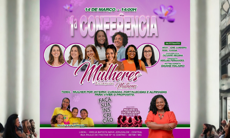 BETIM (MG) – No próximo dia 14 de março, a partir das 14h, a Igreja Batista Nova Jerusalém – Central será sede da 1ª Conferência Mulheres Encorajando Mulheres . O evento surge como um marco para o público feminino da região, propondo uma tarde de ênfase ao fortalecimento emocional, restauração da identidade e alinhamento espiritual.