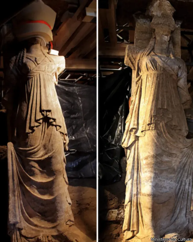 Crédito, Ministerio da CulturaLegenda da foto, Arqueólogos acreditam que alguém ligado a Alexandre, o Grande está enterrado na tumbaAuthor, Giorgos ChristidesRole, Da BBC em Anfípolis, Grécia22 setembro 2014O mistério sobre quem está enterrado em uma enorme tumba dos tempos de Alexandre, o Grande, descoberta no início de agosto na Grécia entusiasmou os gregos e trouxe esperanças de melhora no cenário de crise econômica que o país enfrenta.O túmulo, o maior já encontrado no país, fica em Anfípolis. A expectativa de que alguém da família de Alexandre – ou, para habitantes do local, até mesmo o próprio – possa estar enterrado nele trouxe turistas e valorizou terrenos nas cidades de Anfípoli e Mesolakkia.”Podemos ter ganhado na loteria”, diz o prefeito de Mesolakkia.Os moradores afirmam que já foram procurados com ofertas para vender suas terras. A maioria precisa do dinheiro, mas está esperando até que os arqueólogos que encontraram a tumba façam o anúncio final sobre a identidade de seu dono.”Antes da descoberta, a terra não valia quase nada. Mas agora ninguém quer vender”, diz o morador Menia Kyriakou.Pule Mais lidas e continue lendoMais lidasFim do Mais lidasA descoberta também deu início a uma onda de orgulho e patriotismo.O ministro da cultura, Konstantinos Tasoulas, disse que a descoberta é um lembrete de que a Grécia é o “berço de uma civilização insuperável e um país que merece, com este capital (cultural) único e suas realizações atuais, reivindicar o seu retorno ao progresso e prosperidade”.DescobertaA tumba foi descoberta após dois anos de trabalho comandado pela arqueóloga Katerina Peristeri. O monte onde está localizada fica na antiga Anfípolis, uma grande cidade do reino da Macedônia, a 100 km a leste de Thessaloniki, a segunda maior cidade da Grécia.A estrutura remonta ao final do século 4 AC e o muro ao redor dele tem 500m de circunferência, superando o local do enterro do pai de Alexandre, Filipe 2º, em Vergina, a oeste de Salônica.”Essa é uma tumba de dimensões únicas e impressionante maestria artística. Os mais belos segredos estão escondidos logo abaixo de nossos pés”, disse à BBC o ministro da Cultura, Tasoulas.Crédito, Ministerio da CulturaLegenda da foto, Esta imagem feminina está preservada, mas o rosto da outra figura foi destruídoCrédito, Ministerio da CulturaLegenda da foto, Desenho mostra duas esfinges na frente e duas cariátides guardando o local atrásDentro da tumba, os arqueólogos descobriram duas cariátides (figuras femininas que funcionam como pilastras). Cada uma foi esculpida com um braço estendido, provavelmente para desencorajar intrusos a adentrar na câmara principal do túmulo.Os equivalentes modernos das cariátides ficam em um carro da polícia, a cerca de 200m da entrada do túmulo -o sítio arqueológico é protegido 24 horas por dia por dois policiais.Sua missão é manter longe as dezenas de jornalistas e turistas que chegam ao local por uma estrada de terra sinuosa da aldeia vizinha de Mesolakkia.Mas isso não impediu que a mídia, os arqueólogos e curiosos se envolvessem em um jogo de adivinhação animado.Os arqueólogos concordam que a magnificência do túmulo significa que ele foi construído para uma pessoa importante – talvez um membro da família imediata de Alexandre; pode ser sua mãe, Olímpia, ou sua esposa, Roxana -ou algum nobre macedônio.Outros dizem que ele poderia ser um cenotáfio, memorial fúnebre construído para homenagear uma pessoa enterrada em outro local.Mas só a equipe de escavação pode dar respostas definitivas, e o progresso dos trabalhos tem sido lento desde que os trabalhadores descobriram uma terceira câmara, que está em perigo de desabamento.Crédito, Ministerio da CulturaLegenda da foto, Figuras femininas no monumento medem mais de 2m Os especialistas não chegaram a um veredito, mas, para as poucas centenas de habitantes da moderna Anfípoli e Mesolakkia, as duas aldeias mais próximas ao local onde foi encontrado o monumento, não há dúvida: enterrado dentro do túmulo de mármore perto de suas casas está o próprio Alexandre, o Grande.”Só Alexandre merece um monumento tão grandioso”, diz o agricultor Antonis Papadopoulos, de 61 anos.Arqueólogos e o Ministério da Cultura grego alertam sobre as especulações, especialmente porque é sabido que Alexandre, o Grande, foi enterrado no Egito.”Estamos naturalmente ansiosos para descobrir a identidade de residente da tumba, mas isso será revelado no tempo certo pelos escavadores,” disse o ministro.