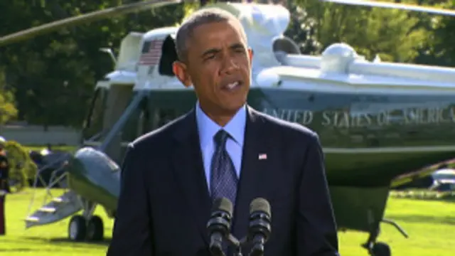 23 setembro 2014Os Estados Unidos divulgaram nesta terça-feira as primeiras imagens do bombardeio aéreo na região da Síria para combater o grupo que se autodeclara “Estado Islâmico”.Crédito, ReproducaoLegenda da foto, Obama: ‘EUA não irá tolerar ameaças ao seu povo’Os ataques começaram na noite de segunda-feira como parte da ofensiva dos EUA e de seus aliados contra o grupo jihadista na região. Em discurso nesta terça, Barack Obama disse que “o governo americano não irá tolerar ameaças ao seu povo”. Obama confirmou ainda a participação de outros países do Oriente Médio nos ataques: Arábia Saudita, Emirados Árabes, Jordânia, Bahrein e Catar. Leia também: Os riscos dos EUA e aliados na luta contra o Estado IslâmicoO presidente finalizou dizendo que os Estados Unidos e seus aliados irão fazer “o que for necessário” para derrotar o “Estado Islâmico”.Histórias relacionadas