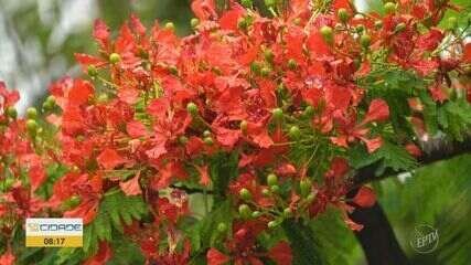 A beleza exuberante dos flamboyants encanta quem passa por ruas e praças de cidades do Norte de Minas. Entre os meses de outubro e dezembro, a árvore transforma as paisagens da região com sua intensa floração.