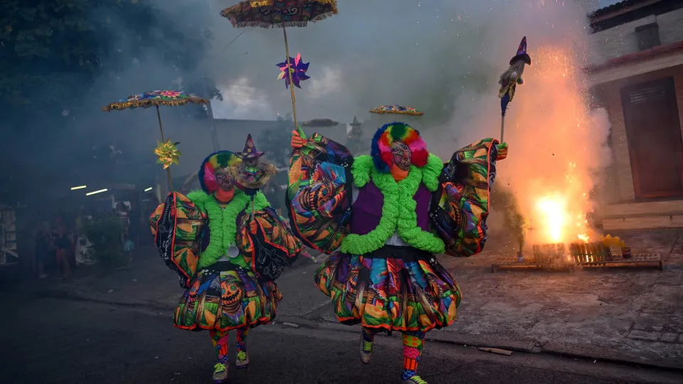 LEONARDO VIECELI E MARCELO TOLEDORIBEIRÃO PRETO, SP (FOLHAPRESS) – Policiais militares do Rio prenderam um grupo com 61 pessoas fantasiados de bate-bolas na noite desta segunda-feira (16) na avenida Brasil, no Rio de Janeiro, quando se dirigiam para o Complexo da Penha, na zona norte. Com o grupo, foram encontradas armas, munições e drogas. O caso será investigado pela Polícia Civil. Os bate-bolas são grupos carnavalescos que desfilam fantasiados pelas ruas do subúrbio do Rio, batendo bolas de borracha no chão.Também chamados de Clóvis, eles surgiram na década de 1930, com foliões utilizando roupas bufantes, máscaras e as bolas de borracha. O grupo de 61 pessoas deixou Nilópolis de ônibus, a caminho do Complexo da Penha, e chamou a atenção do Batalhão de Choque da PM ao passar pelo Piscinão de Ramos, de acordo com a Polícia Militar. Dentro do ônibus, havia foliões exaltados, fazendo bagunça e, conforme a polícia, perturbando a ordem pública. Os policiais iniciaram o acompanhamento do veículo, até que no Caju realizaram a abordagem. Com o grupo, foram apreendidas duas pistolas, dois revólveres, munições e drogas –cujo total não foi divulgado. Todos os ocupantes do ônibus foram encaminhados para a 21ª Delegacia de Polícia, em Bonsucesso, que investigará o caso.