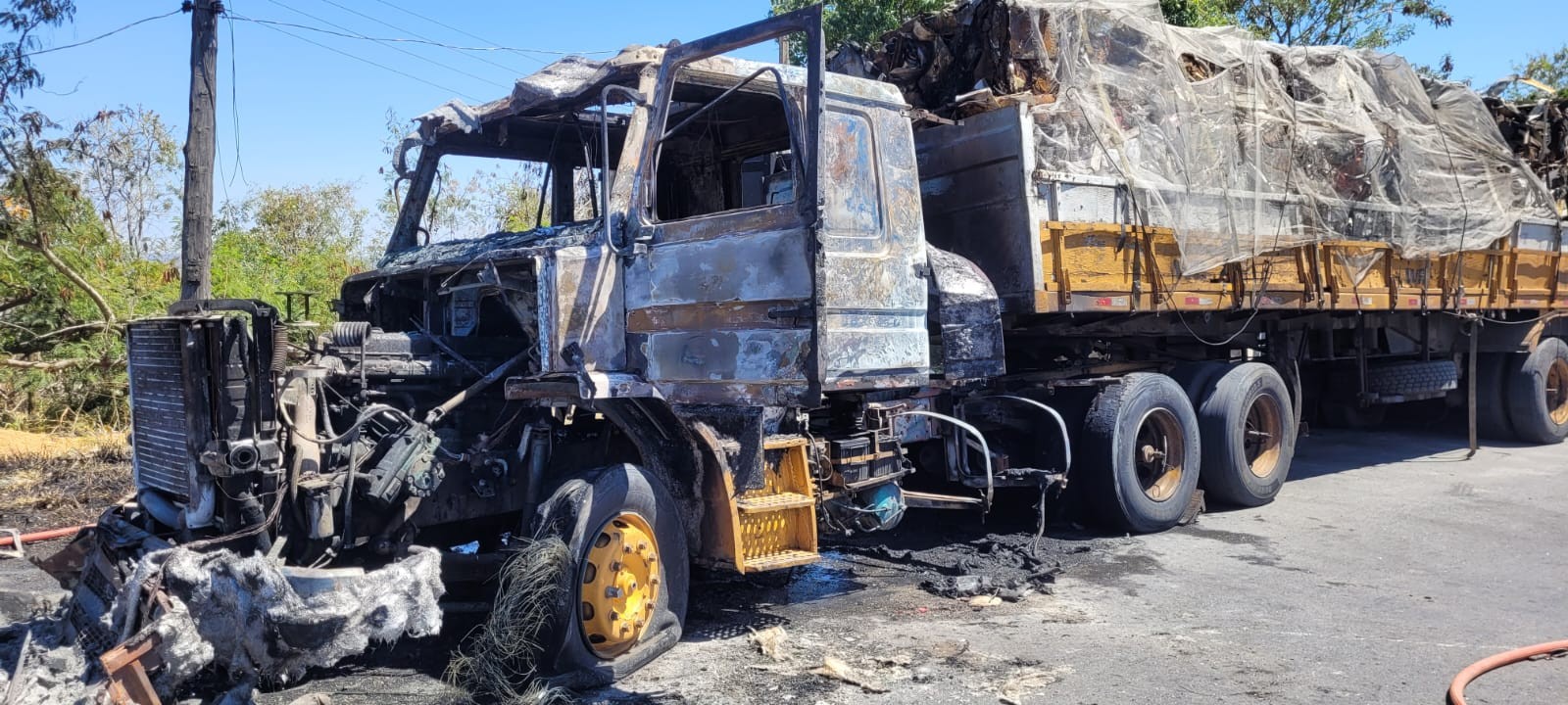 Um incêndio em uma carreta carregada de sucata mobilizou o Corpo de Bombeiros na BR-135, na zona rural de Montes Claros, nesta terça-feira (30).