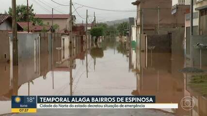 Enchente provoca danos em Espinosa e cidade declara situação de emergência
