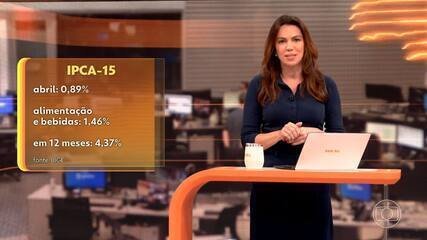 IPCA-15 acelera para 0,89% em abril, com pressão de alimentos e combustíveis