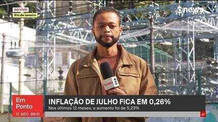 No ano, o IPCA acumula alta de 3,26% e, nos últimos 12 meses, o índice ficou em 5,23%, abaixo dos 5,35% dos 12 meses imediatamente anteriores. Em julho de 2024, a variação havia sido de 0,38%. Embora tenha desacelerado em relação ao mês passado (0,99%), o grupo de Habitação liderou a alta do índice medido pelo IBGE, com avanço de 0,91%, impulsionado pela elevação de 3,04% na energia elétrica residencial. Em julho, ainda vigorava a bandeira tarifária vermelha patamar 1, que acrescenta R$ 4,46 na conta de luz a cada 100 kWh consumidos. No ano, energia elétrica residencial acumula uma alta de 10,18%, destacando-se como o principal impacto individual (0,39 p.p.) no resultado acumulado do IPCA (3,26%). Esta variação (10,18%) é a maior para o período janeiro a julho desde 2018 quando o acumulado foi de 13,78%. Por outro lado, o grupo Alimentação e bebidas, de maior peso no índice, registrou queda média de preços de -0,27% em julho, marcando o segundo recuo seguido — em junho, a variação havia sido de -0,18%. A retração foi puxada pela alimentação no domicílio, que caiu 0,69% na comparação mensal, com destaque para as quedas da batata-inglesa (-20,27%), cebola (-13,26%) e arroz (-2,89%). Também tiveram queda no mês os grupos de Vestuário (-0,54%) e Comunicação (-0,09%). Os demais grupos de produtos e serviços pesquisados ficaram entre o 0,91% de Habitação e o 0,02% de Educação. Veja o resultado dos grupos do IPCA em julho Seis dos nove grupos pesquisados pelo IBGE apresentaram alta: Habitação: 0,91%Despesas pessoais: 0,76%Saúde e cuidados pessoais: 0,45%Transportes: 0,35%Artigos de residência: 0,09%Educação: 0,2% Em julho, três dos grupos pesquisados tiveram queda: Vestuário: -0,54%Alimentação e bebidas: -0,27%Comunicação: -0,09%