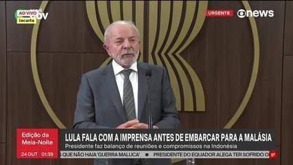 Ao responder o correspondente internacional da TV Globo Felippe Coaglio, o presidente afirmou que reunião é esperada há um tempo e que “sempre disse que, quando Trump quisesse conversar, o Brasil estava à disposição”. Lula disse que tem não tem nenhum assunto vetado que possa ser tratado no encontro, mas que pretende discutir principalmente o comércio e as punições aos ministros do Supremo Tribunal Federal (STF). “Tenho todo interesse nessa reunião, mostrar que houve equívoco nas taxações, mostrar com números”, disse o presidente. Lula diz que acredita que “relação humana é química’ e que fazer de forma digital não tem o mesmo resultado que pessoalmente: “Olho no olho, pegar na mão, abraçar a pessoa”. Lula afirmou que depois da ligação telefônica com Trump os dois estão caminhando para mostrar que “não há divergência que não possa ser resolvida quando duas pessoas sentam na mesa para conversar”. Para o presidente brasileiro, será uma reunião livre, sem assunto proibido, e que eles poderão dizer o que quiserem, e também ouvir o que não quiserem. “Convencido que vai ser bom para o Brasil e para os Estados Unidos, vamos voltar à nossa normalidade”, afirmou Lula. Lula na Ásia 🔎 A Cúpula da ASEAN é o evento em que as principais lideranças do bloco formado por 10 países do sudeste asiático se reúnem para discutir cooperação regional, crescimento econômico e estabilidade em seus territórios. Participam desse bloco países como Filipinas, Indonésia, Malásia, Singapura, Tailândia e Vietnã. Presidente da República, Luiz Inácio Lula da Silva, durante reunião bilateral com o Secretário-Geral da Associação das Nações do Sudeste Asiático (ASEAN), Dr. Kao Kim Hourn. Secretaria-Geral da ASEAN — Foto: Ricardo Stuckert/PR Ataques dos EUA à Venezuela Lula disse ainda nesta sexta que, se Trump quiser, eles tratarão o assunto do narcotráfico e os recentes ataques do presidente americano à Venezuela. Para o presidente brasileiro, “se o mundo virar uma terra sem lei, vai ficar muito difícil”, pois não concorda que sejam feitos ataques e invasões a outros países com a justificativa de combater o narcotráfico. “Acho que falta um pouco de compreensão da questão da política internacional”, disse Lula sobre a afirmação de Trump de que vai ‘apenas matar as pessoas que estão levando drogas para o seu país’.” COP 30 e perfuração da Petrobras na Foz do Amazonas O presidente afirmou que a mensagem que o Brasil quer passar para o mundo é que é um dos “países com mais energia renovável do planeta, e com gasolina e diesel mais puros que os outros”. Ele disse que a Petrobras não possui histórico de vazamento de óleo em lugar nenhum e que é uma empresa com expertise para remover o petróleo sem nenhum dano. “Muito fácil falar do fim do combustível fóssil, mas é difícil a gente dizer hoje quem é que tem condição de se libertar do combustível fóssil. Ninguém tem”, afirmou. Ele acredita que é preciso usar o dinheiro do petróleo para consolidar a transição energética do planeta. “A Petrobras está deixando de ser uma empresa de petróleo para ser uma empresa de energia”, disse Lula.