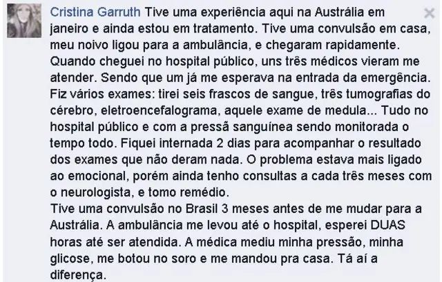 Crédito, ThinkstockLegenda da foto, Foco das reportagens foi escolhido com base em uma consulta com leitores nas redes sociais24 setembro 2014A BBC Brasil publica nesta semana uma série de depoimentos de médicos brasileiros que atuam no exterior para discutir os problemas e os pontos positivos do sistema de saúde pública no Brasil.Os depoimentos fazem parte de uma série de reportagens especiais para nossa cobertura das eleições de 2014. A cobertura foi elaborada seguindo indicações feitas pelos leitores da BBC Brasil nas redes sociais, em consultas promovidas pelo #salasocial, o projeto da BBC Brasil que usa as redes sociais como fonte de histórias originais.A maioria dos nossos leitores sugeriu o foco nos problemas da atenção básica de saúde no Brasil. As experiências dos médicos brasileiros no exterior visam contribuir para esse debate, trazendo exemplos dos sistemas públicos de saúde de outros países e promovendo um exercício de comparação com a realidade brasileira.Os relatos dos médicos brasileiros no exterior também são uma oportunidade interessante de conhecer um pouco da realidade desses profissionais em outros países, num momento em que a sociedade brasileira ainda discute o programa Mais Médicos, do governo federal, que promoveu a vinda de médicos estrangeiros ao Brasil para tentar resolver o problema da falta de médicos no atendimento básico do sistema público.Entre os depoimentos estão o da pediatra Márcia Dias da Costa, radicada há 17 anos na Espanha. Ela comenta a questão do preconceito dos pacientes contra estrangeiros, a crise que levou muitos médicos espanhóis a aderir ao programa Mais Médicos, no Brasil, e as diferenças entre os sistemas públicos de saúde nos dois países.A patologista Fernanda Amary, que trabalha desde 2010 num hospital de Londres, diz que não sente preconceito por parte dos pacientes, mas diz afirma que levou tempo até conseguir a confiança dos colegas. A médica também comenta sobre as diferenças de organização nos sistemas de saúde no Brasil e no Reino Unido.Pule Mais lidas e continue lendoMais lidasFim do Mais lidasJá o médico Fabio Cury, que está há dez anos em Québec, no Canadá, chama a atenção para o fato de haver um único sistema no país, o publico, que atende a ricos e pobres de maneira eficiente.Também publicamos uma reportagem que mostra as diferenças entre o Sistema Único de Saúde (SUS), do Brasil, e o NHS (National Health Service), o sistema britânico que serviu de inspiração para a criação do brasileiro.A BBC Brasil também pediu aos seus leitores nas redes sociais que compartilhassem conosco suas experiências com os sistemas públicos de saúde em outros países, seja como médicos ou como pacientes. Confira e também participe do debate.Leia abaixo alguns comentários de nossos leitores:Crédito, BBC World ServiceCrédito, BBC World ServiceCrédito, BBC World ServiceCrédito, BBC World Service