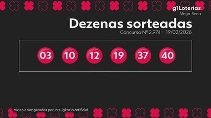 O sorteio do concurso 2.974 da Mega-Sena foi realizado na noite desta quinta-feira (19), em São Paulo. Nenhuma aposta acertou as seis dezenas, e o prêmio para o próximo sorteio acumulou em R$ 105 milhões. Veja os números sorteados: 03 – 10 – 12 – 19 – 37 – 40 5 acertos – 108 apostas ganhadoras: R$ 27.143,024 acertos – 7.587 apostas ganhadoras: R$ 636,88 O próximo sorteio da Mega será no sábado (21). Mega-Sena, concurso 2.974 — Foto: Reprodução/Caixa Como funciona a Mega-sena Para apostar na Mega-Sena As apostas podem ser realizadas até as 20h (horário de Brasília) em qualquer lotérica do país ou por meio do site e aplicativo Loterias Caixa, disponíveis em smartphones, computadores e outros dispositivos. Já os bolões digitais poderão ser comprados até as 20h30, exclusivamente pelo portal Loterias Online e pelo aplicativo. O pagamento da aposta online pode ser realizado via PIX, cartão de crédito ou pelo internet banking, para correntistas da Caixa. É preciso ter 18 anos ou mais para participar. Probabilidades A probabilidade de vencer em cada concurso varia de acordo com o número de dezenas jogadas e do tipo de aposta realizada. Para um jogo simples, com apenas seis dezenas, que custa R$ 6, a probabilidade de ganhar o prêmio milionário é de 1 em 50.063.860, segundo a Caixa. Já para uma aposta com 20 dezenas (limite máximo), com o preço de R$ 232.560,00, a probabilidade de acertar o prêmio é de 1 em 1.292, ainda de acordo com a instituição. Mega-Sena bilhete volante Loterias — Foto: Millena Sartori/g1