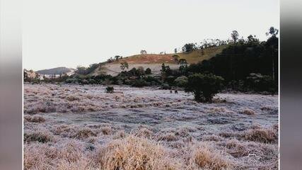 Também teve geada e temperatura negativa em Caldas, que registrou -1,3º C. Outras cidades do Sul de Minas tiveram temperaturas bem baixas, segundo o Cptec. Foram vistas geadas em cidades como Cabo Verde, Delfim Moreira, Maria da Fé e Poços de Caldas.