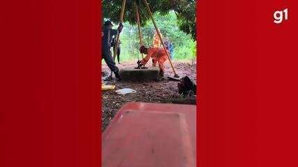Mulher cai em cisterna de 12 metros no quintal de casa e é resgatada por bombeiros em MG; vídeo