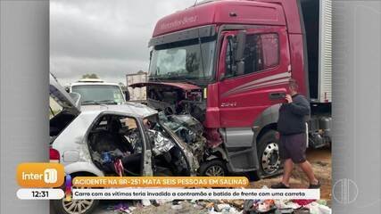 Na madrugada desta terça-feira (21), o motorista, de 49 anos, a esposa, de 39, três filhos do casal, de 3, 10 e 15 anos, e a avó materna das crianças, de 59, morreram após o carro em que estavam bater de frente com uma carreta em Salinas. O cachorro da família também morreu.