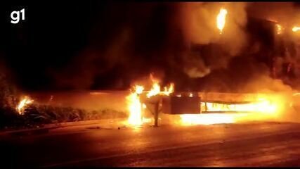 VÍDEO: Carreta pega fogo na BR-251