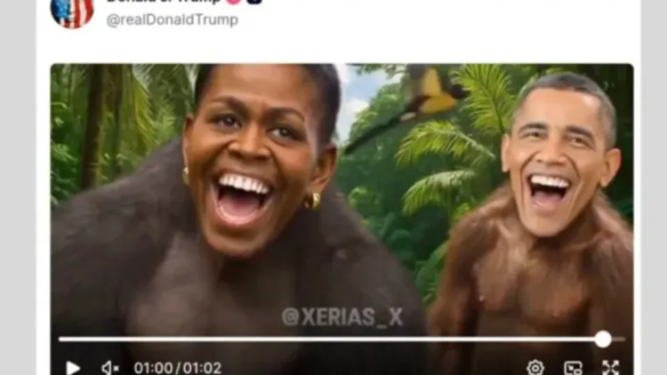 SÃO PAULO, SP (FOLHAPRESS) – O presidente dos Estados Unidos, Donald Trump, publicou nas redes sociais um vídeo racista que retrata Barack Obama e sua mulher, Michelle, como macacos. O conteúdo remete a uma teoria da conspiração relacionada às eleições de 2020 e gerou reação de integrantes do Partido Democrata e até mesmo de republicanos. Após a repercussão negativa, o presidente recuou e apagou o vídeo. Um funcionário da Casa Branca disse à agência de notícias AFP que o post foi compartilhado por engano por um membro da equipe e que, por isso, havia sido excluído. A versão diverge de um posicionamento divulgado mais cedo nesta sexta. A secretária de Imprensa da Casa Branca, Karoline Leavitt, havia defendido o post, chamando a repercussão de “indignação falsa”. “Isto vem de um vídeo de meme da internet que retrata o presidente Trump como o rei da selva, e os democratas como personagens de ‘O Rei Leão'”, escreveu Leavitt em comunicado à AFP. “Por favor, parem com a indignação falsa e noticiem hoje algo que realmente importe para o público americano.” O vídeo publicado, que dura um minuto, termina com um trecho que mostra os rostos do ex-presidente e da ex-primeira-dama sobrepostos aos de macacos. A canção “The Lion Sleeps Tonight”, da trilha sonora de “O Rei Leão”, toca ao fundo quando o casal aparece. O conteúdo, compartilhado na Truth Social, na quinta-feira (5), foi gerado com ferramentas de inteligência artificial. O vídeo repete acusações falsas de que a empresa Dominion Voting Systems, fabricante de urnas eletrônicas nos EUA, ajudou a fraudar o pleito de 2020. Naquele ano, Joe Biden derrotou Trump na corrida pela Casa Branca. A fabricante, inclusive, processou a Fox News por difamação após a emissora divulgar afirmações de que as máquinas foram usadas para manipular o resultado das eleições. As empresas chegaram a um acordo judicial de US$ 787,5 milhões (R$ 3,9 bilhões) em 2023. O gabinete do governador da Califórnia, Gavin Newsom, um dos principais opositores de Trump e potencial candidato democrata à Presidência em 2028, afirmou que o presidente teve “comportamento repugnante” ao compartilhar o vídeo racista. “Todo republicano deve denunciar isto. Agora”, publicou a conta do gabinete de Newsom na rede social X. Ben Rhodes, ex-conselheiro de Segurança Nacional e aliado próximo de Obama, também condenou o ato. “Deixem que Trump e seus seguidores racistas sejam assombrados porque os americanos do futuro verão os Obamas como figuras queridas enquanto o estudam como uma mancha em nossa história”, escreveu. Tim Scott, o único senador negro do Partido Republicano, criticou o vídeo. “É a coisa mais racista que já vi sair desta Casa Branca.”Obama foi o único presidente negro na história dos EUA. O líder democrata, que não tem o costume de responder às provocações e aos ataques de seu opositor, não havia se pronunciado até a última atualização deste texto. Desde que retornou à Casa Branca no ano passado, Trump intensificou o uso de imagens geradas por IA, muitas vezes com conteúdos que ridicularizam seus críticos e opositores. O republicano utiliza publicações provocativas para mobilizar sua base conservadora. No ano passado, Trump publicou um vídeo gerado por IA que mostrava Barack Obama sendo preso no Salão Oval e aparecendo atrás das grades, vestindo um uniforme laranja, de detento. Na época, o democrata não reagiu à provocação. Trump também já publicou um vídeo produzido por IA de Hakeem Jeffries, líder da minoria democrata na Câmara dos Representantes, com um bigode falso e um chapéu. O deputado, que é um homem negro, classificou a imagem de racista. Jeffries também se pronunciou nesta sexta sobre o vídeo do casal Obama. “Todo republicano deve denunciar imediatamente a repugnante intolerância de Donald Trump”, escreveu ele em um post no X, chamando o presidente de “indivíduo doente”. Leia Também: Justiça dá 5 dias para ex-goleiro Bruno regularizar liberdade condicional sob risco de prisão