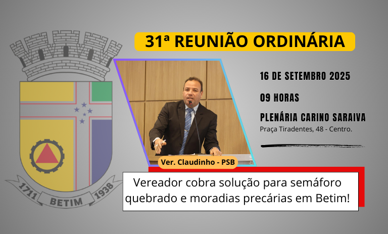 A segurança no trânsito e a dignidade da moradia foram temas centrais levantados pelo vereador Claudinho em recente pronunciamento na Câmara Municipal. O parlamentar fez um apelo direto aos líderes do governo, destacando problemas que afetam diariamente a população de Betim.
