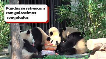 Pandas gigantes se refrescam com guloseimas geladas nos zoológicos da China